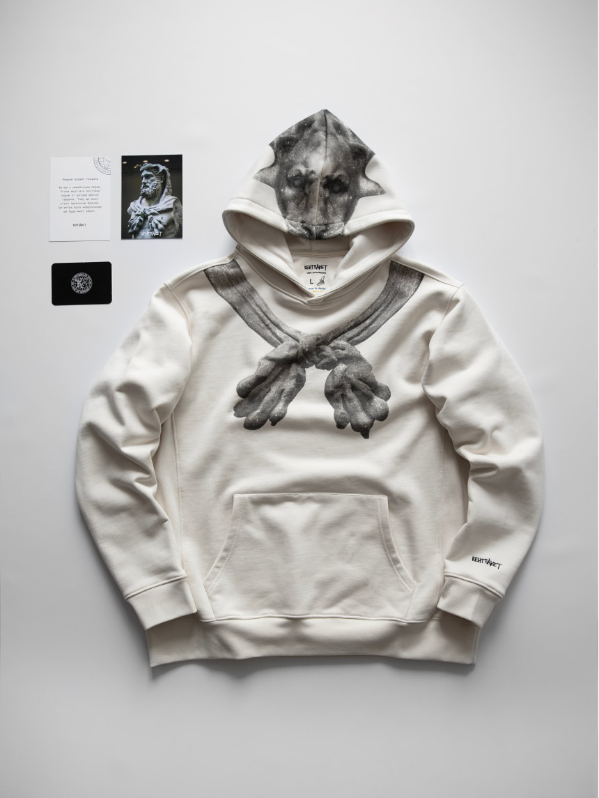 Дизайн худі натхенний скульптурою Геракла з нью-йоркского музею Метрополітен. Перший та найвідоміший із 12 подвигів Геракла - подолати Немейського лева. Це завдання здавалося нереальним до виконання, адже шкура лева була невразливою для стріл та мечів. Однак, використовуючи свою силу та винахідливість, він вирішив задушити його. Ця шкура лева стала його невідʼємною, ідеальною бронею.